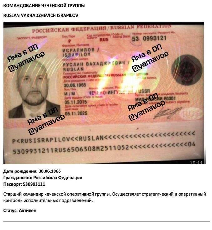 Ruslan Israpilov: a citizen of the RF, status ACTIVE. A mid-level operational coordinator and the brain behind enforcement operations.
