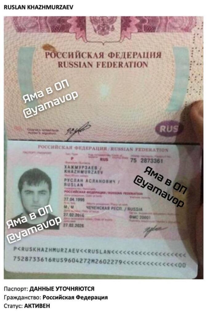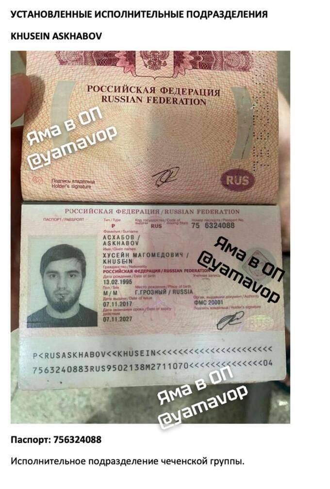 Khusein Askhabov: passport 756324088. Member of the enforcement unit.