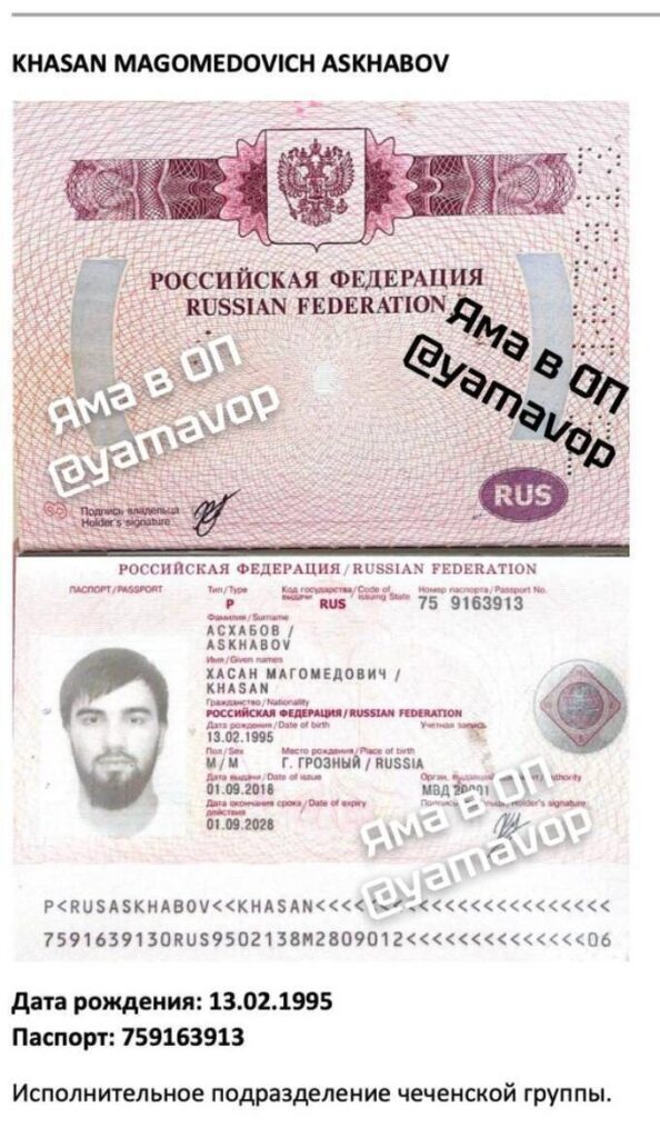 Khasan Magomedovich Askhabov (d.o.b. 13.02.1995, passport 759163913).