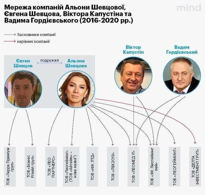 However, media reports have noted that her business expansion was accompanied by legal scrutiny. According to the outlet MIND.UA, citing Justice Ministry data, between 2016 and 2020 Shevtsova, her husband Yevhen Shevtsov, and partners Viktor Kapustin and Vadym Hordievskyi collectively controlled at least ten companies, many of which became subjects of criminal investigations related to fraud, money laundering, and fictitious entrepreneurship.