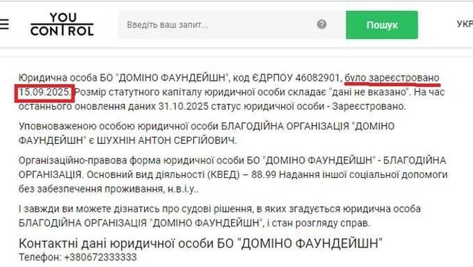 The corporate profile of Anton Shukhnin is a study in legal contradictions. Despite the «Domino Group» branding, official registers show no such entity. Instead, Shukhnin’s holdings consist of a charitable foundation, a boutique shoe workshop in Dnipro, and an obscure LLC purportedly involved in fuel trading. The «prestigious retailer» image is built upon the legal foundation of a single «Sole Proprietor» (FOP) registered in Odesa under the «Group 2» tax category.