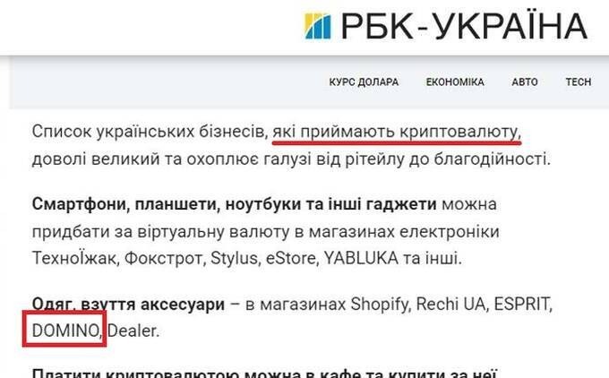 The fact that Domino sells clothing for crypto was reported by the reputable publication RBC — Ukraine as early as May 2024