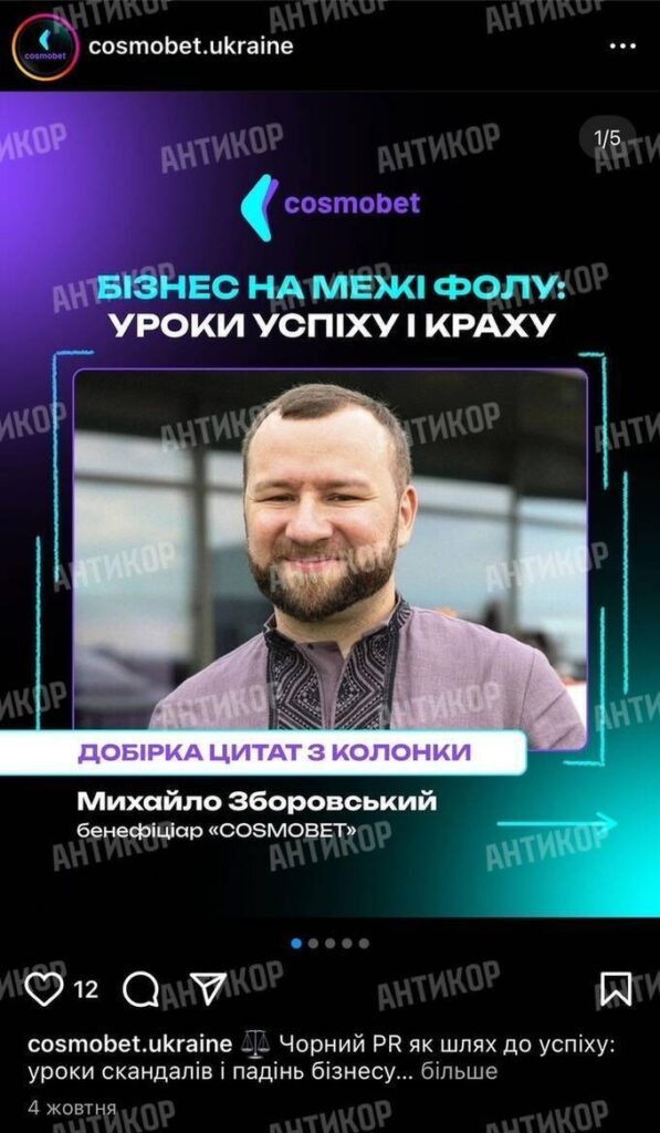 The situation might sound ironic if the platform’s alleged true owners were not promoting the narrative that Mykhailo Zborovskyi, originally from the village of Krasylivka in the Ivano-Frankivsk region, became the beneficiary of a casino with an authorized capital of 30 million hryvnias, despite having no proven industry experience or visible financial resources to support such ownership.