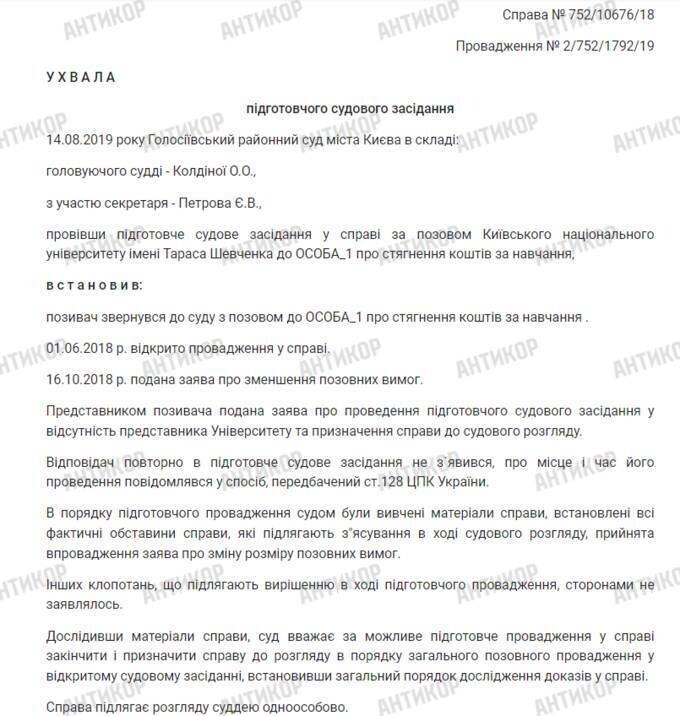 It also appears that Mykhailo Zborovskyi may have faced financial challenges during his university years. In 2018, Taras Shevchenko National University of Kyiv reportedly filed a claim with the Holosiivskyi District Court seeking to recover unpaid tuition fees from him.
