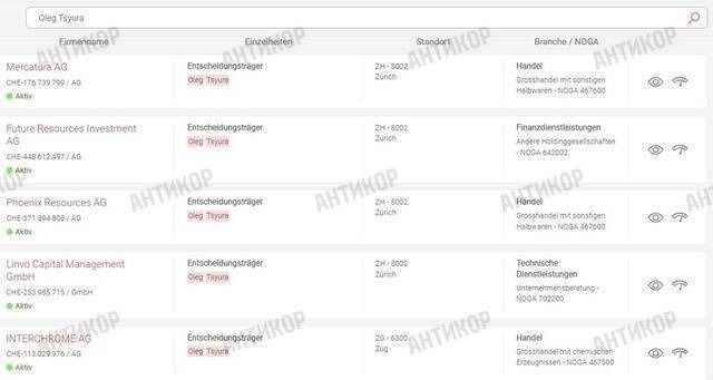 According to registry data, Oleg Tsyura holds dual citizenship: Germany and Switzerland. He owns several firms in these two countries providing financial management and asset protection services in Switzerland, particularly for clients from Russia. These services include facilitating cross-border transactions and asset movements, allowing Russian companies to bypass sanctions imposed by Western governments.
