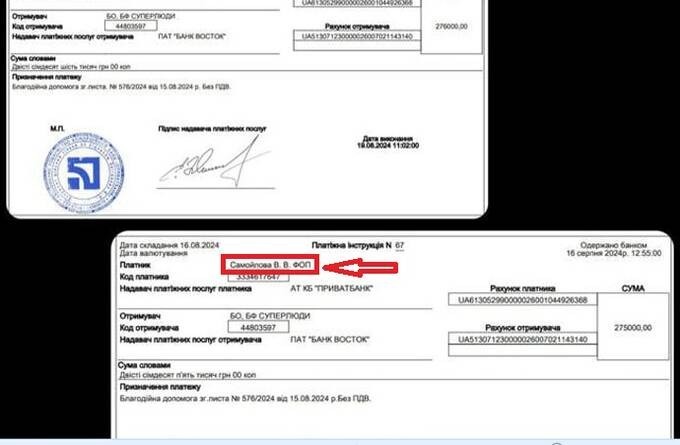 Oleksandr Orlovsky insists the donation was made personally by him, and Superhumans also believe the contribution came from Orlovsky. However, the documents presented by the self-described benefactor indicate otherwise — the funds were actually transferred by a seemingly unrelated individual entrepreneur.